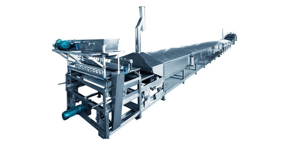 通過(guò)攤漿輥將漿液分攤到蒸粉網(wǎng)帶上,攤漿均勻,無(wú)薄厚不均現象,攤漿厚度可調;