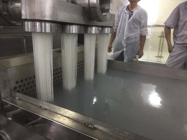 冷卻后的米粉被定長(cháng)切斷。粉被切成定長(cháng)。